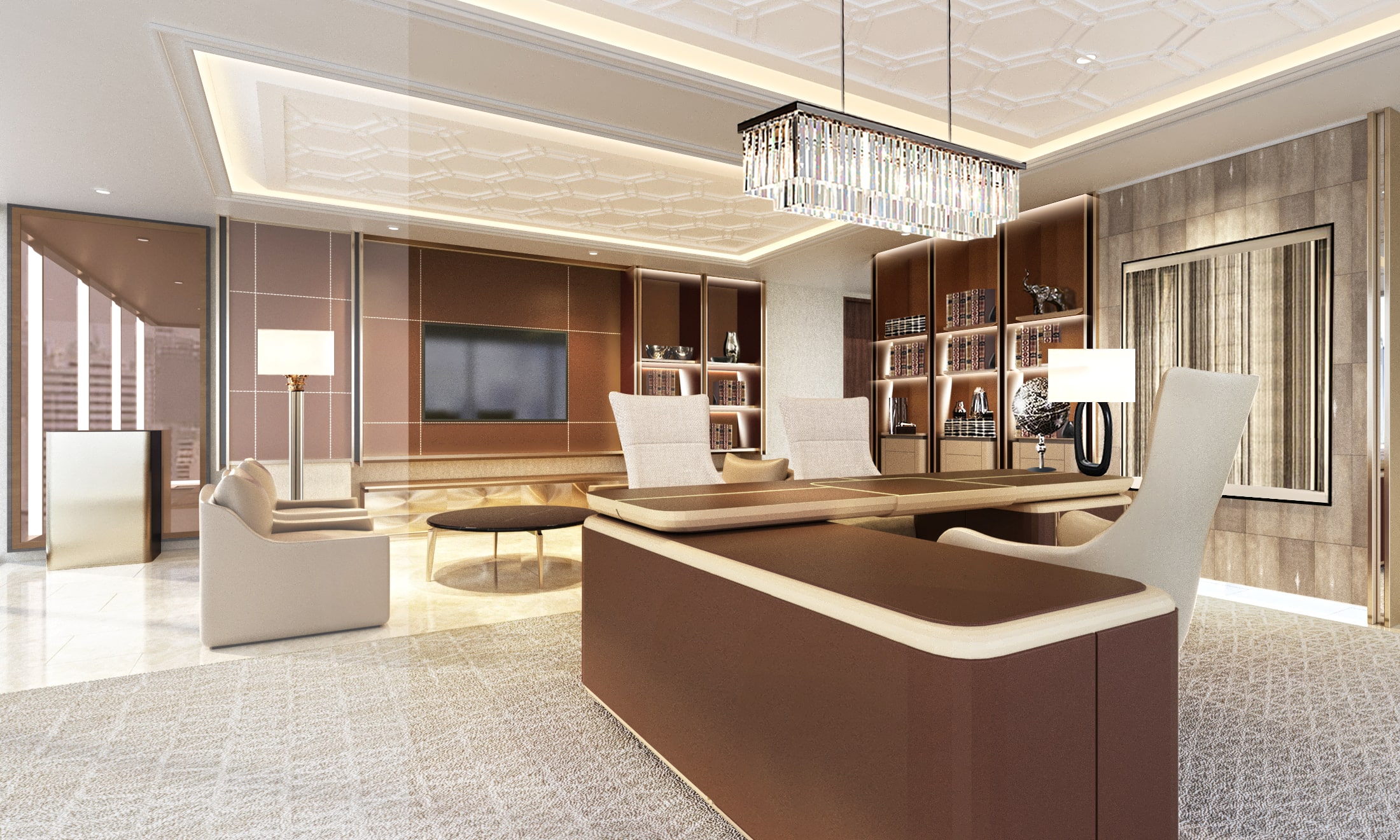 Interior design of Doreen Group’s Head Office at Walsow Tower Dhaka. Doreen group is Bangladesh’s one of the biggest conglomerate active in multi sector. The scope of work included interior design of executive offices on Level 17. Our scope of services included, interior design; FF&E design; and remote supervision of construction.