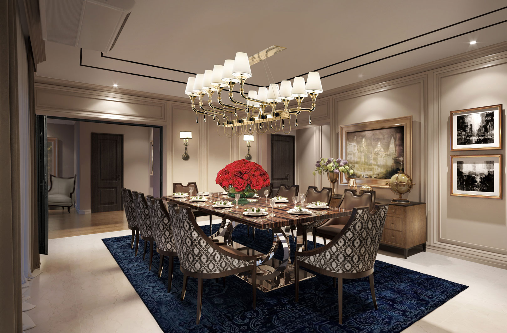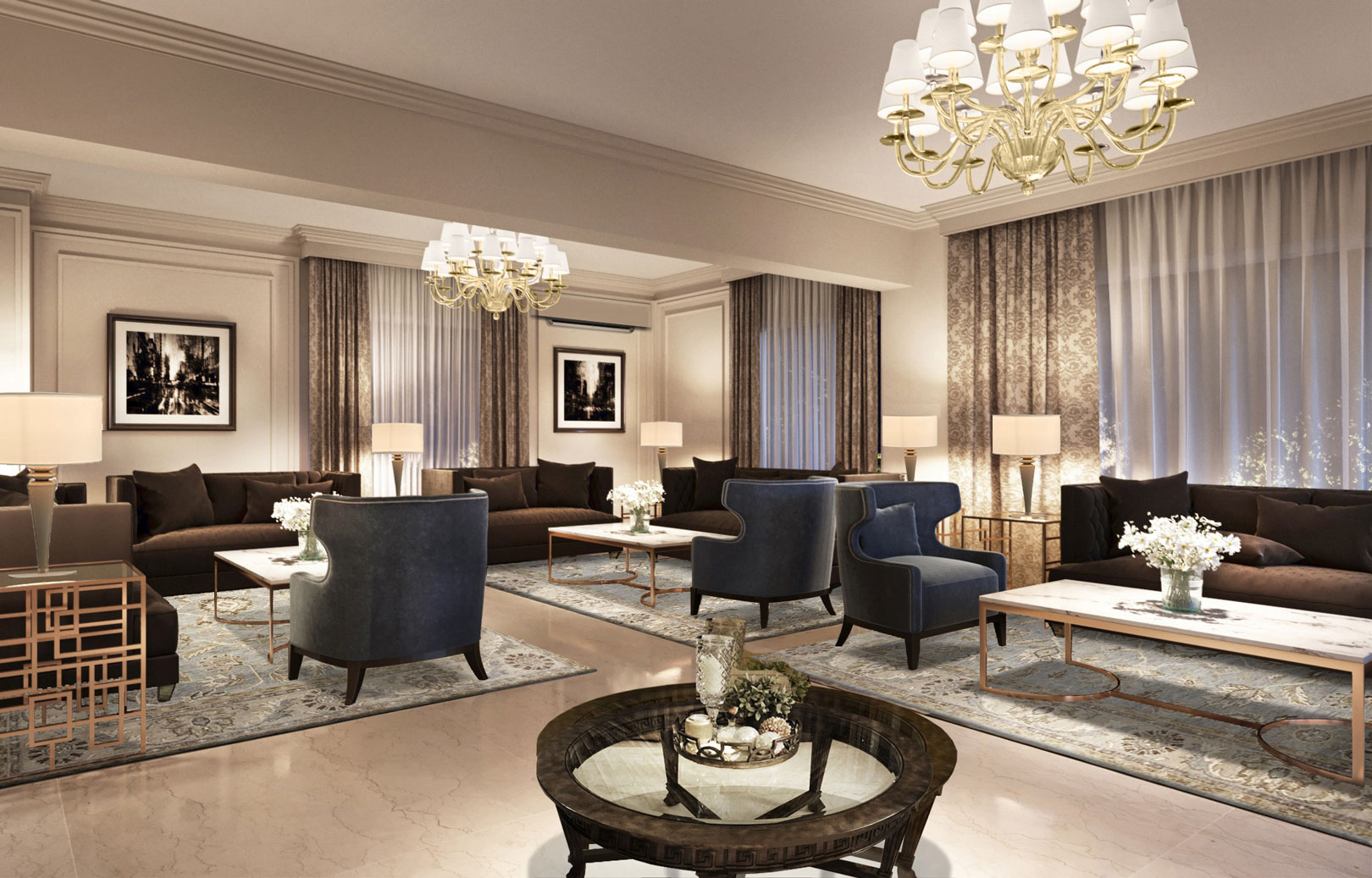Interior design of luxury penthouse for a high networth industrialist client. The scope of services included interior design and documentation; and, FF&E selection and procurement.
