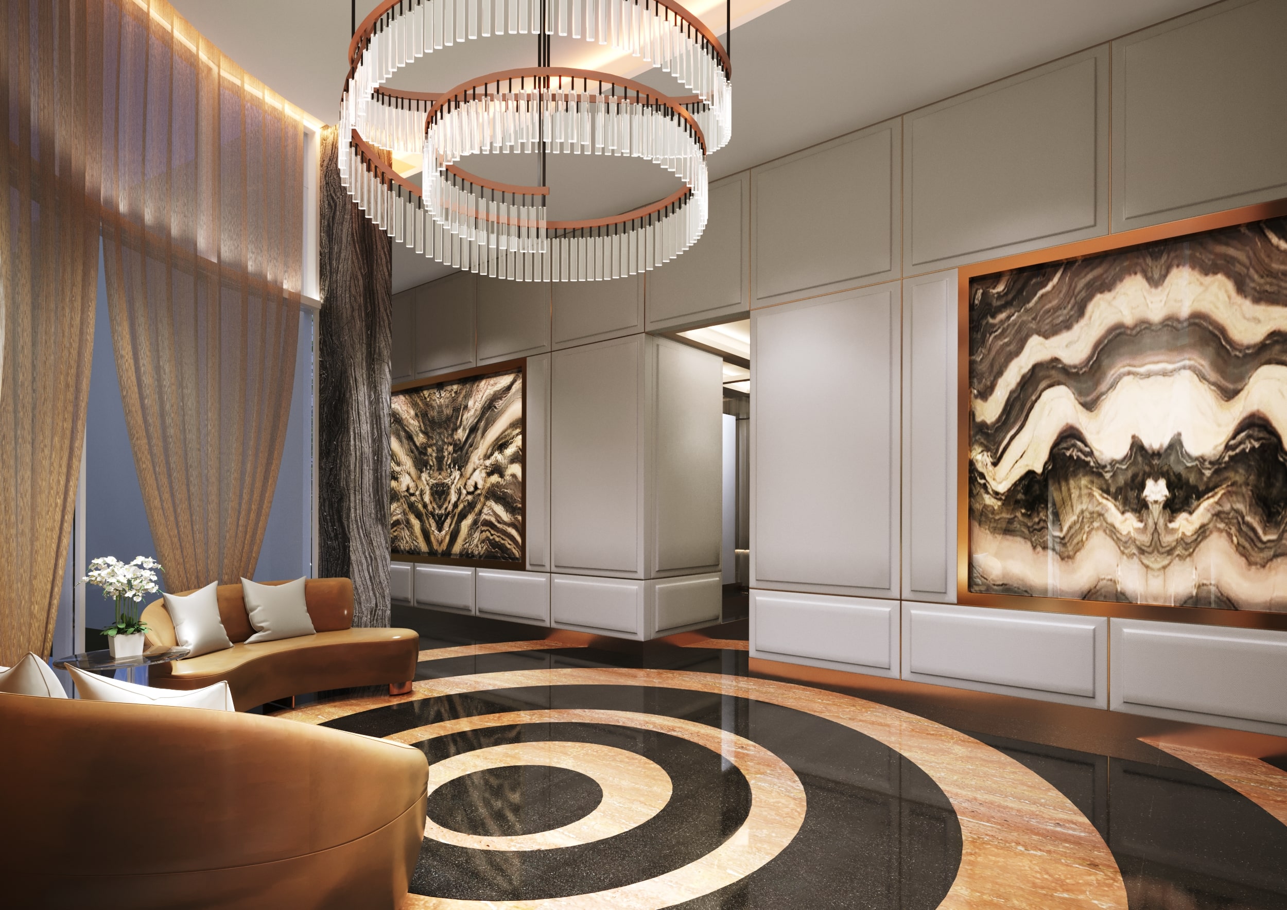 Design of main lobby, lift lobbies and resident lounge of a luxurious condominium at KLCC, Kuala Lumpur. Our scope includes space planning, interior design and FF&E design.